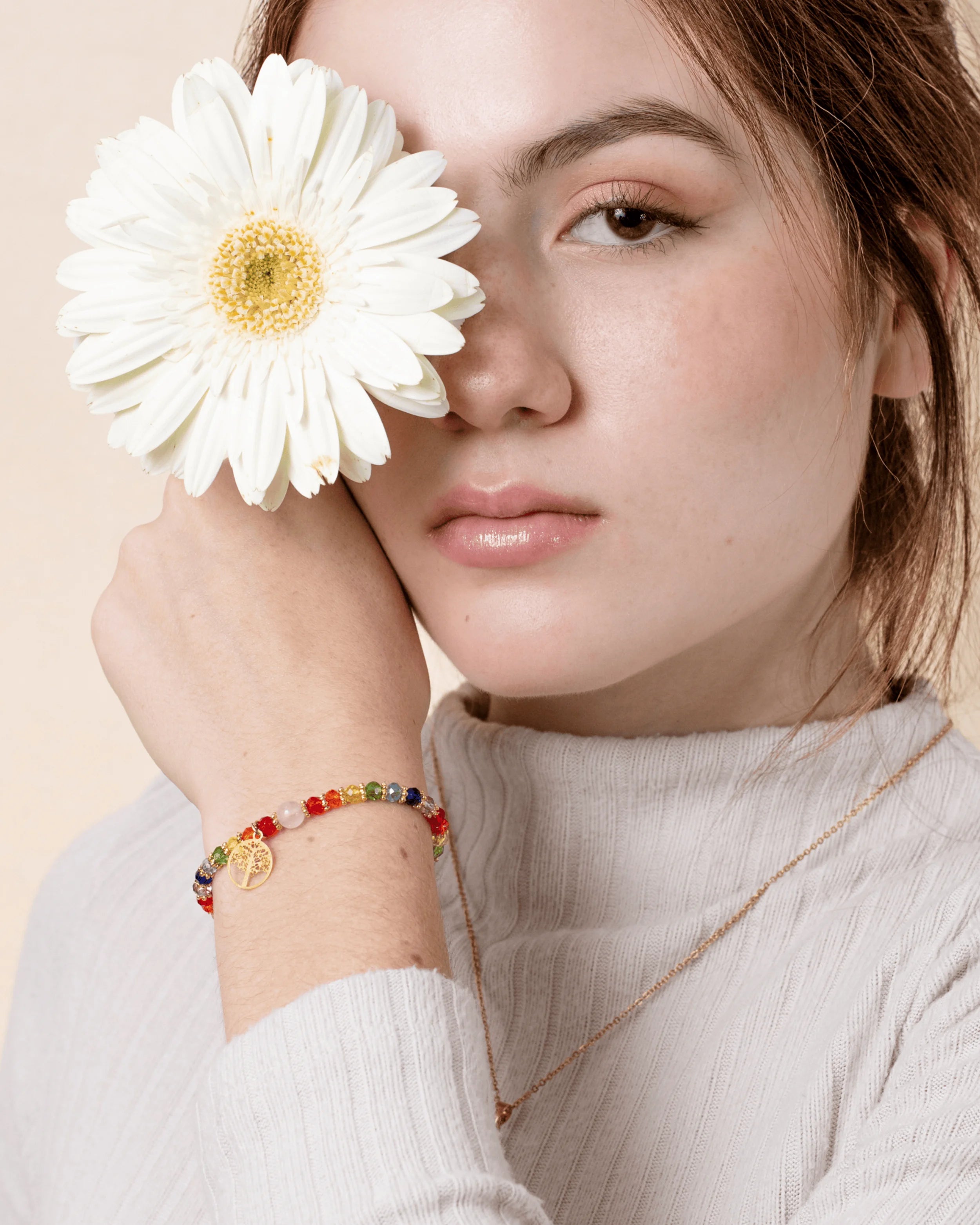 Cada una de nuestras joyas está elaborada con dedicación y cuidado por manos artesanas que tejen con alma y detalle. Piezas únicas que realzan la belleza natural de la mujer y cuentan historias a través de sus formas, colores.